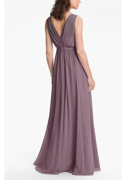 Chiffon Column V-Neck Sleeveless Bridesmaid Dress-F0311095