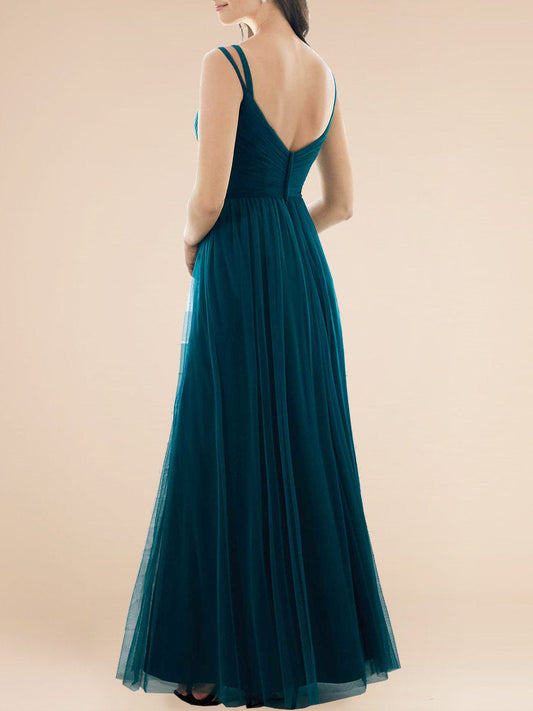Tulle Column Off the Shoulder Sleeveless Bridesmaid Dress-F0113310