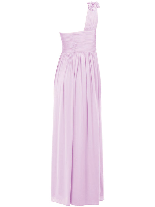 Chiffon Column One Shoulder Sleeveless Bridesmaid Dress-F0117607