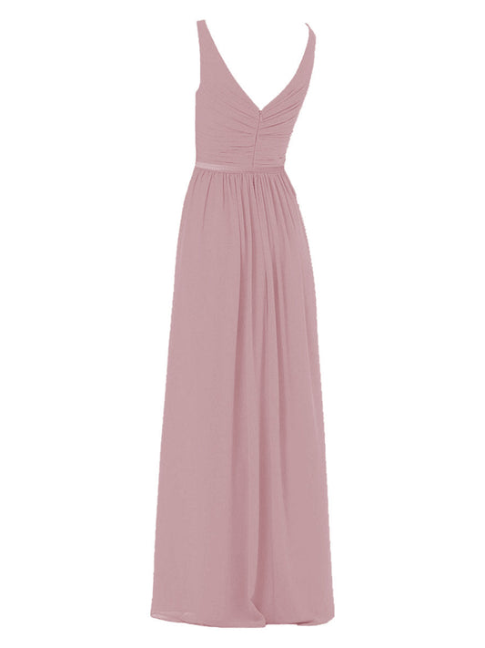 Chiffon Column V-Neck Sleeveless Bridesmaid Dress-F0311101