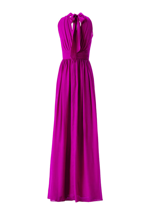 Chiffon Column Halter Sleeveless Bridesmaid Dress-F0311092