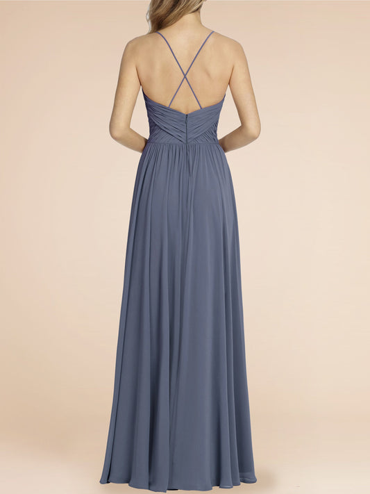 Chiffon Column Straps Sleeveless Bridesmaid Dress-F0117879