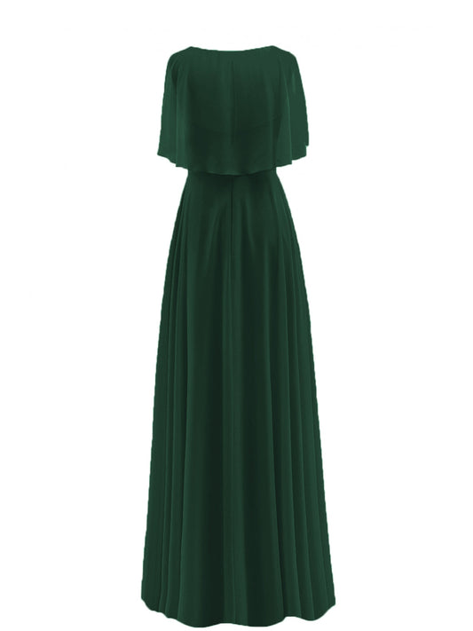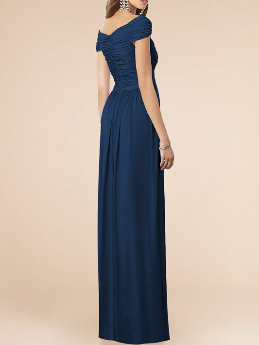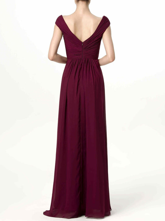 Chiffon Column Off the Shoulder Cap Sleeves Bridesmaid Dress-F0113277