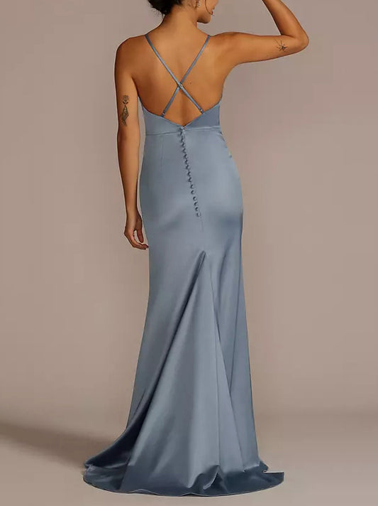 Stretch Satin Column V-Neck Sleeveless Bridesmaid Dress-F0313047