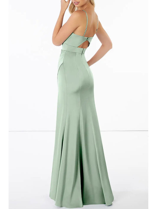 Stretch Satin Column V-Neck Sleeveless Bridesmaid Dress-F0313054