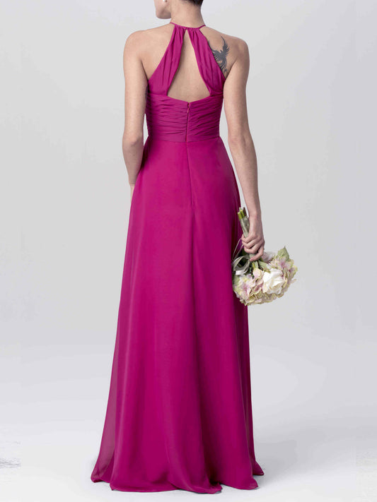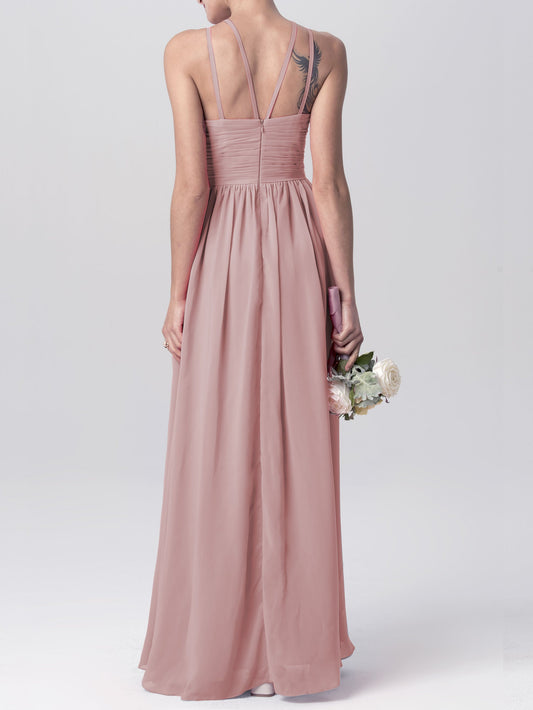 Chiffon Column Halter Sleeveless Bridesmaid Dress-F0311092