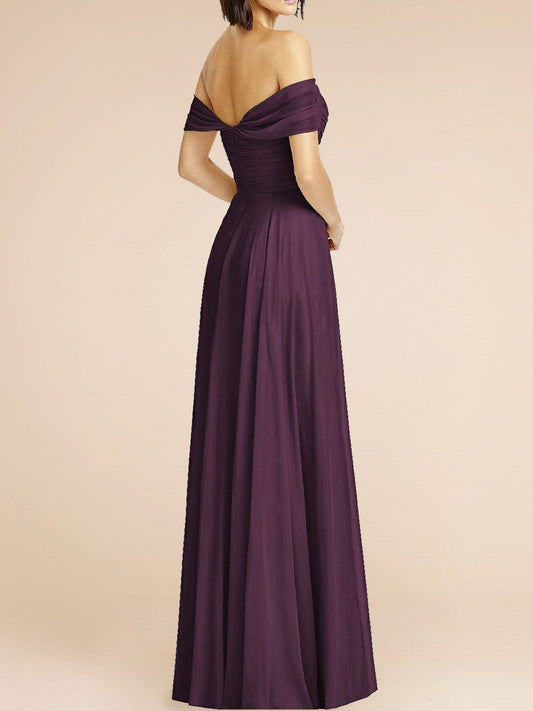 Chiffon Column Off the Shoulder Sleeveless Bridesmaid Dress-F0113290