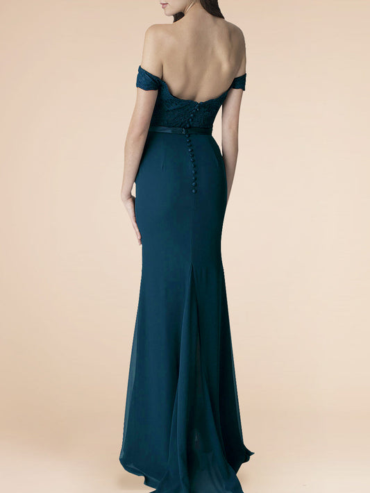 Lace Mermaid Off the Shoulder Sleeveless Bridesmaid Dress-F0113305