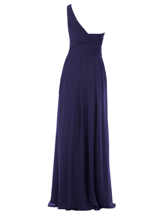 Chiffon Column One Shoulder Sleeveless Bridesmaid Dress-F0117607