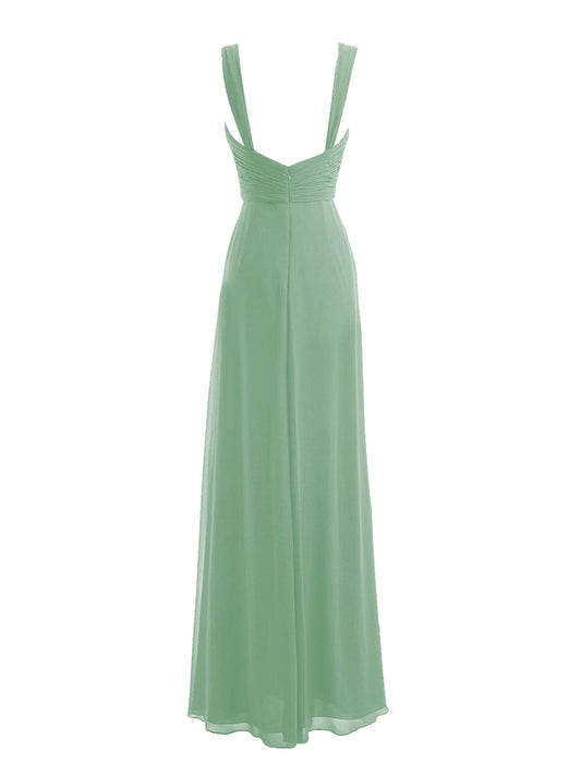 Chiffon Column Straps Sleeveless Bridesmaid Dress-F0117914