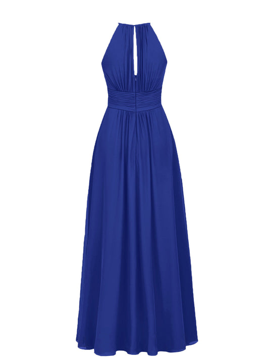 Chiffon Column Halter Sleeveless Bridesmaid Dress-F0311093