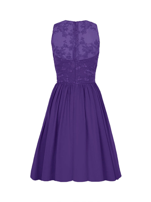 Chiffon A-line Scoop Neck Sleeveless Bridesmaid Dress-F0113978
