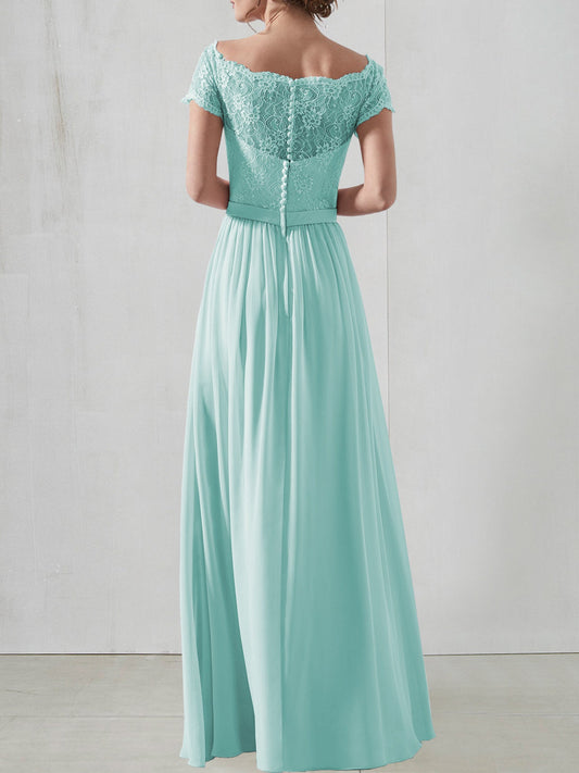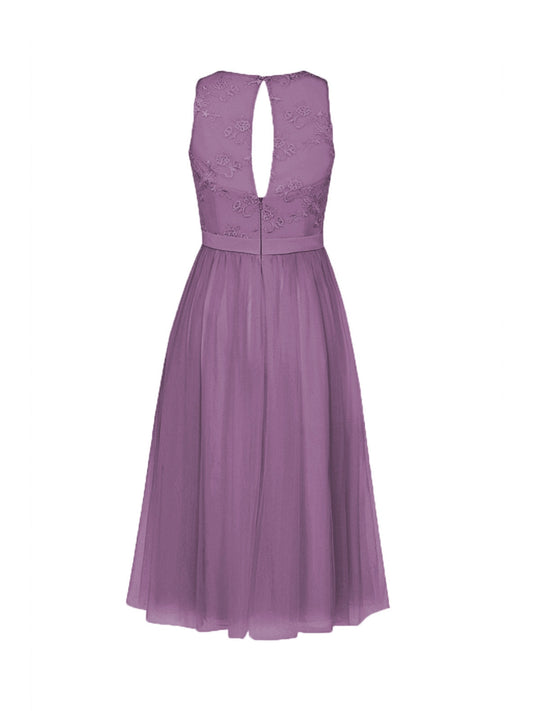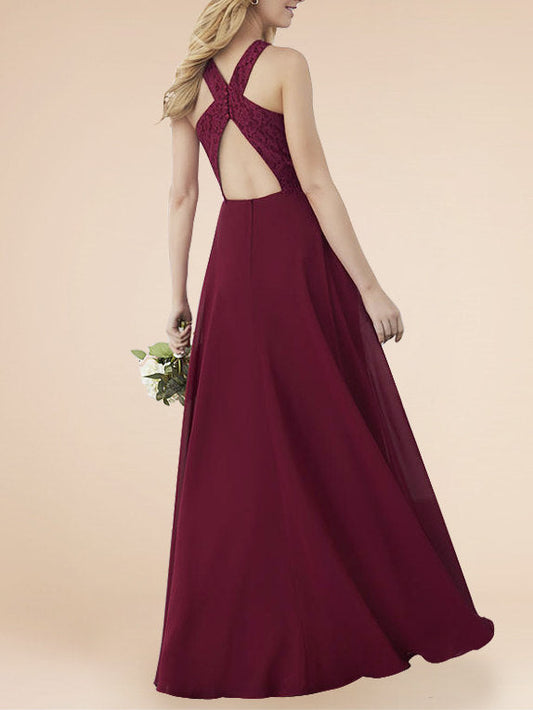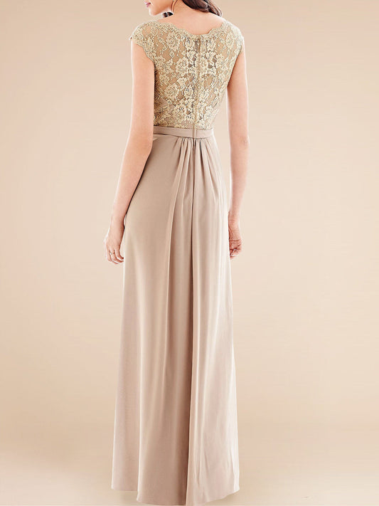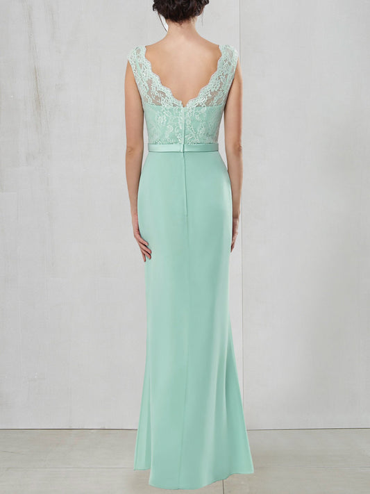 Lace Column Boat Neck Sleeveless Bridesmaid Dress-F0114828