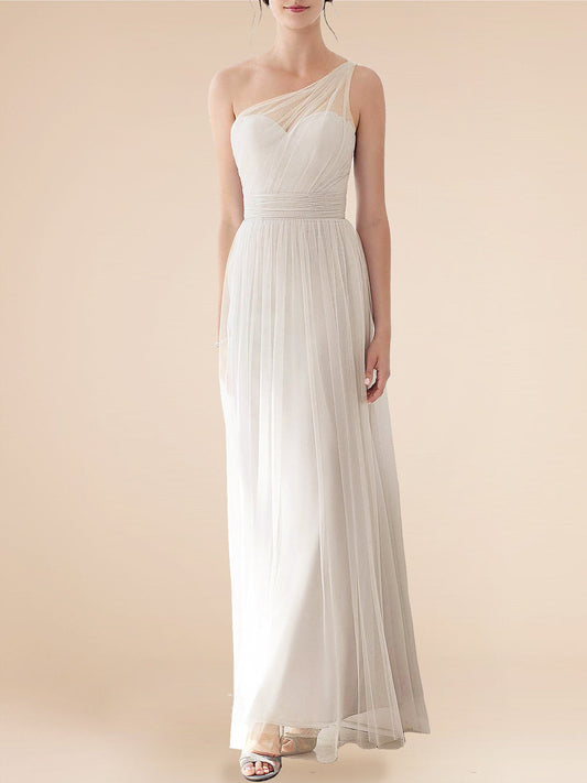 Tulle Column One Shoulder Sleeveless Bridesmaid Dress-F0113311