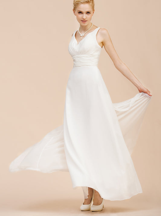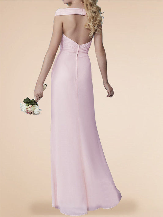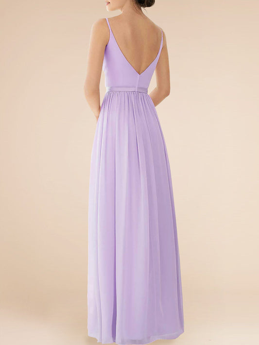 Chiffon Column V-Neck Sleeveless Bridesmaid Dress-F0113793