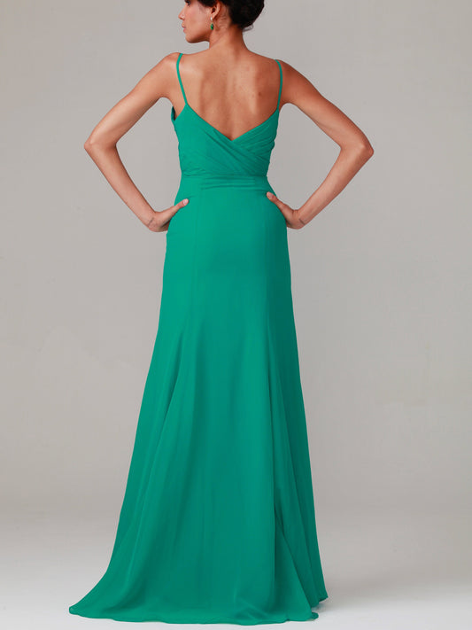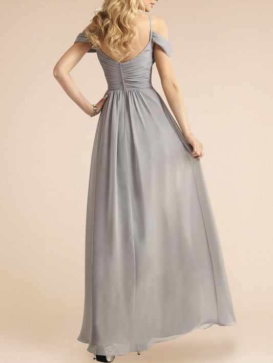 Chiffon Column Spaghetti Straps Sleeveless Bridesmaid Dress-F0117022