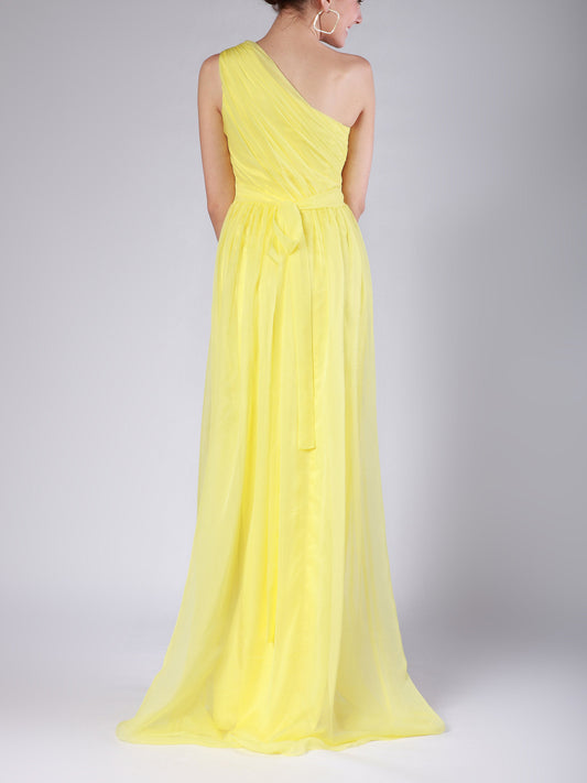 Chiffon Column One Shoulder Sleeveless Bridesmaid Dress-F0114002
