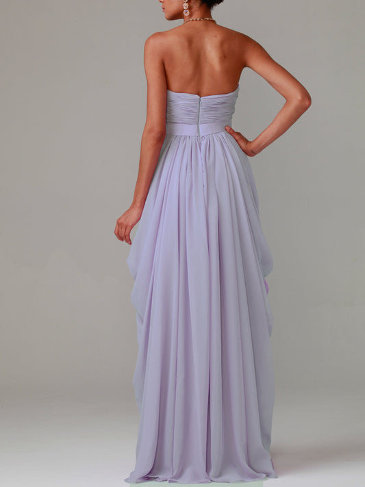 Chiffon Column Strapless Sleeveless Bridesmaid Dress-F0114000