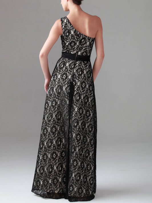 Lace Column One Shoulder Sleeveless Bridesmaid Dress-F0117062