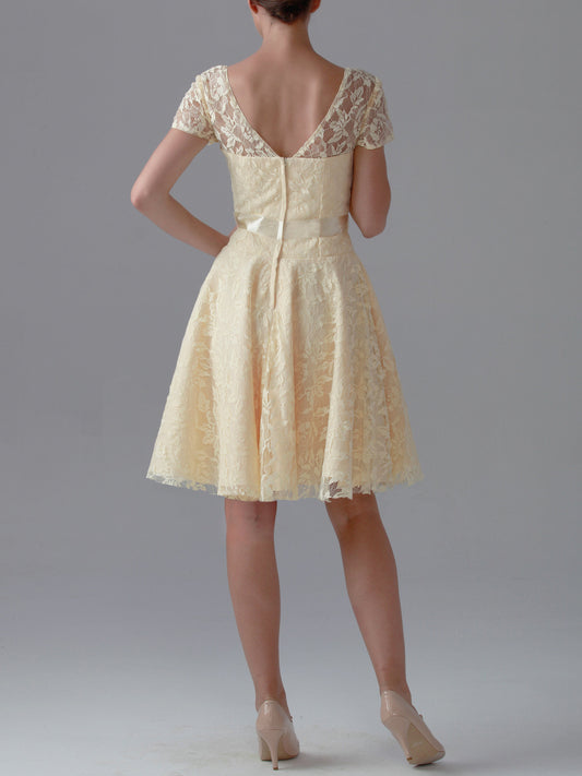 Lace A-line Scoop Neck Short Sleeves Bridesmaid Dress-F0117086