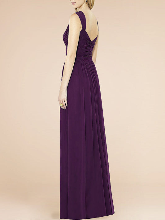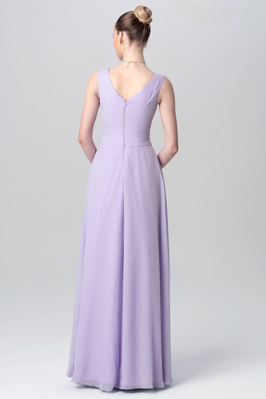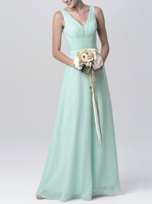Chiffon Column V-Neck Sleeveless Bridesmaid Dress-F0113045