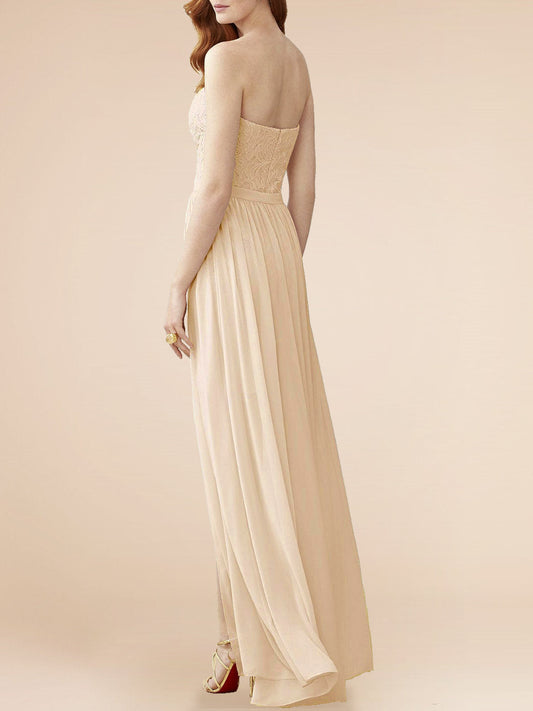 Lace Column Strapless Sleeveless Bridesmaid Dress-F0110076
