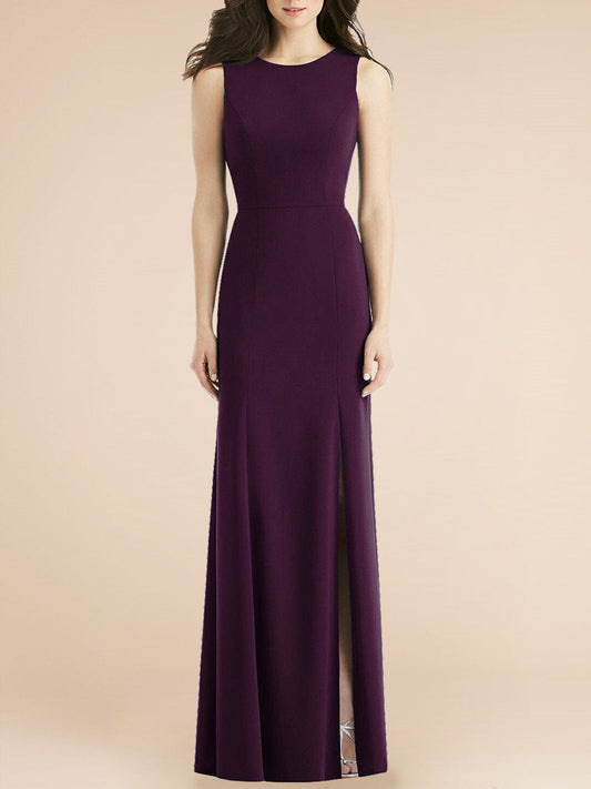 Lace Column Scoop Neck Sleeveless Bridesmaid Dress-F0110091