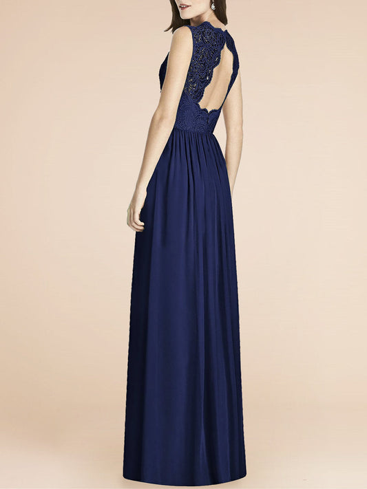 Lace Column V-Neck Sleeveless Bridesmaid Dress-F0110092