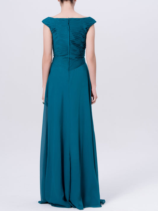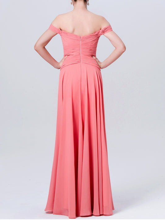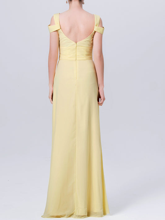 Chiffon Column Off the Shoulder Sleeveless Bridesmaid Dress-F0113034