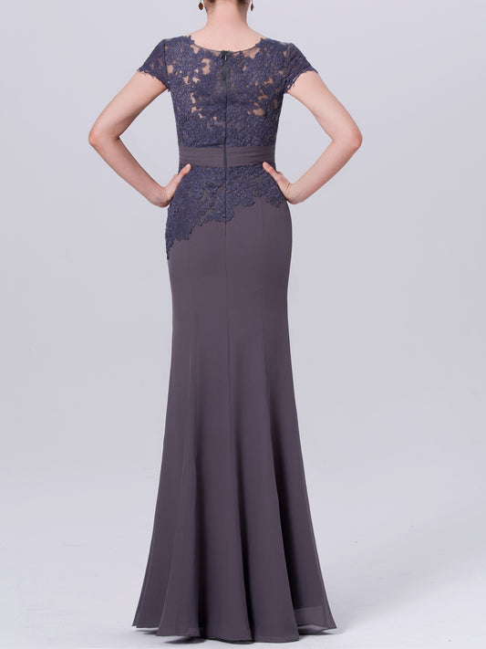 Lace Mermaid Boat Neck Short Sleeves Bridesmaid Dress-F0113044