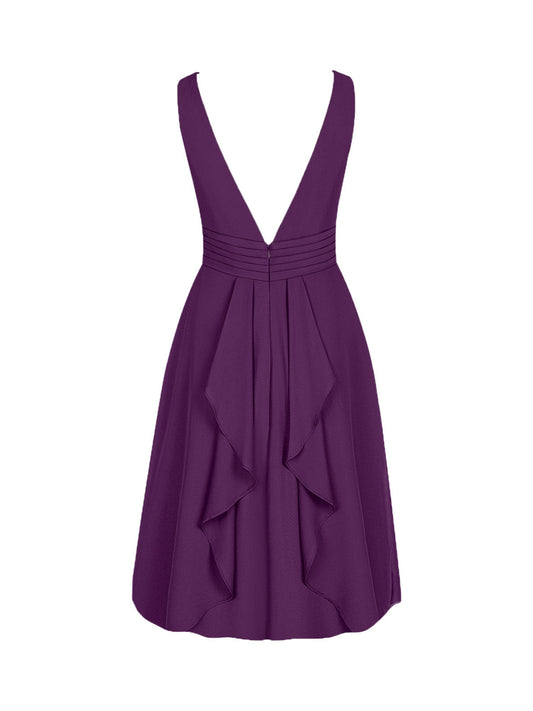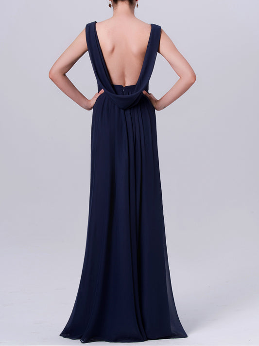 Chiffon Column Dipped Sleeveless Bridesmaid Dress-F0113056