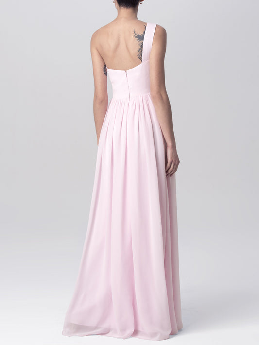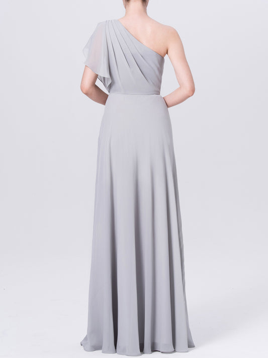 Chiffon Column One Shoulder Sleeveless Bridesmaid Dress-F0113104