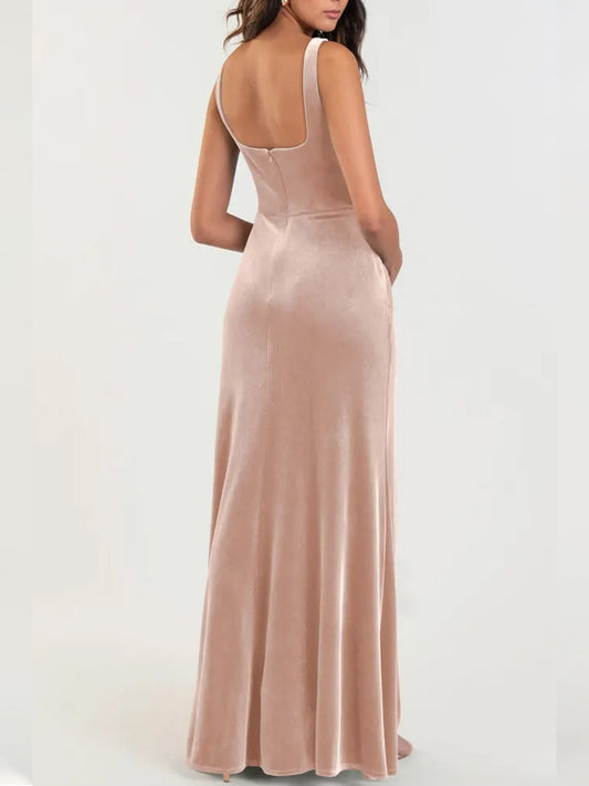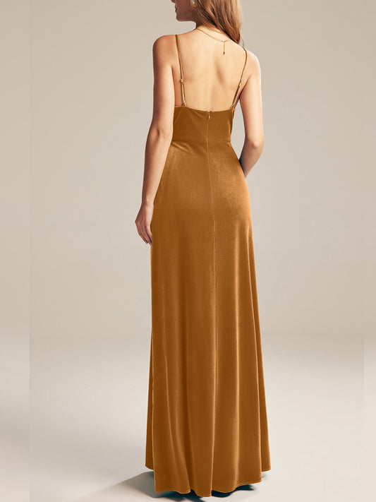 Velvet A-Line Cowl Neck Sleeveless Bridesmaid Dress-F0313022