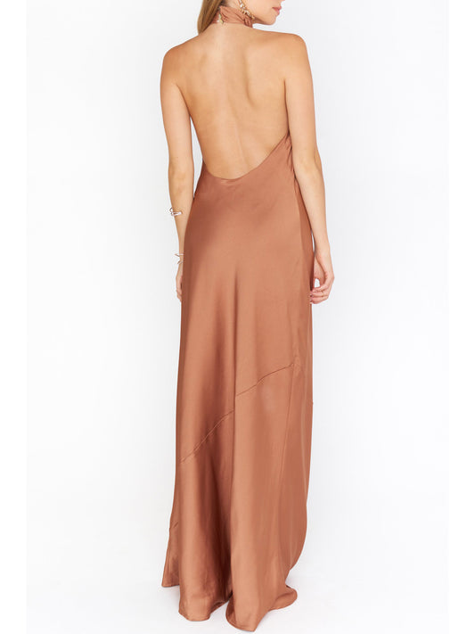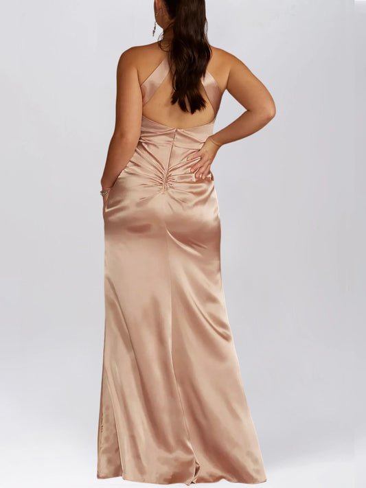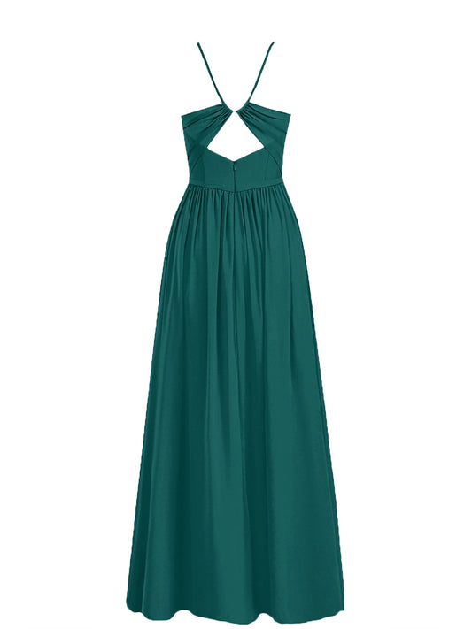 Stretch Satin A-Line Halter Sleeveless Bridesmaid Dress-F0313007
