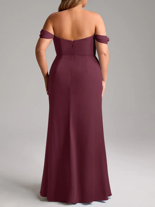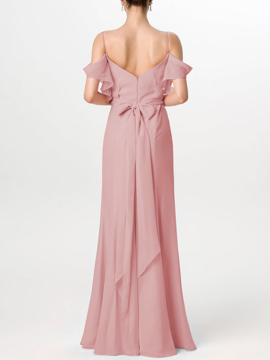 Chiffon Column Off the Shoulder Sleeveless Bridesmaid Dress-F0113151