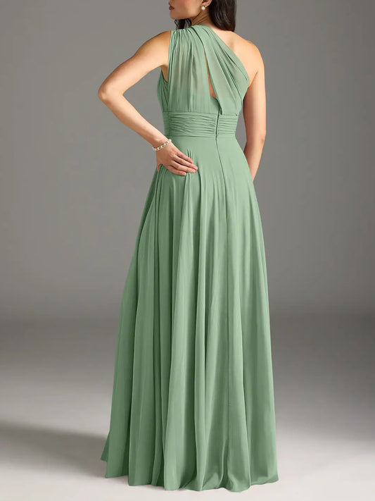 Chiffon Column Halter Sleeveless Bridesmaid Dress-F0113138