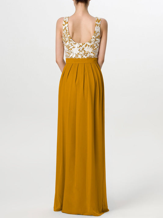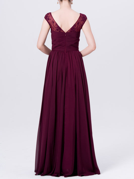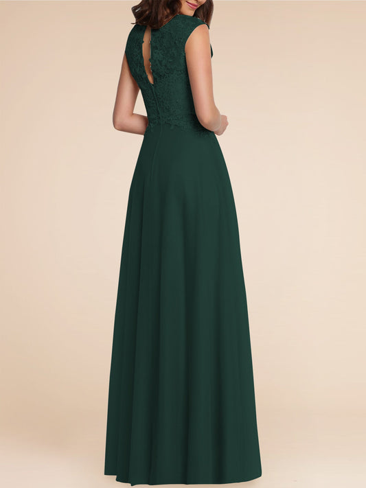 Lace Column Boat Neck Sleeveless Bridesmaid Dress-F0113185
