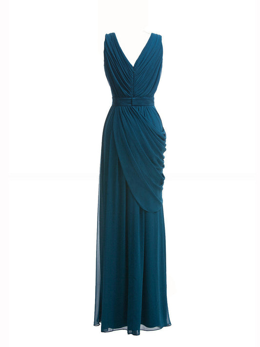 Chiffon Column V-Neck Sleeveless Bridesmaid Dress-F0117912