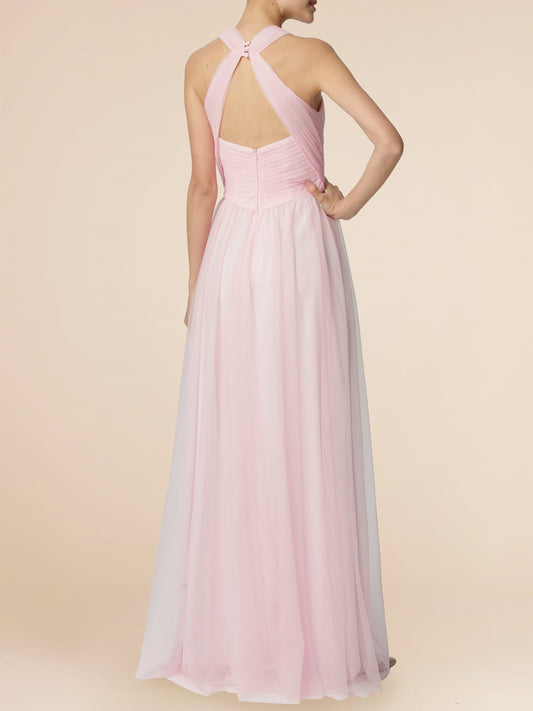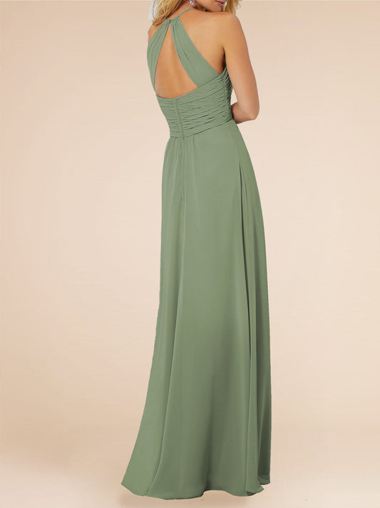Chiffon Column Halter Sleeveless Bridesmaid Dress-F0311102