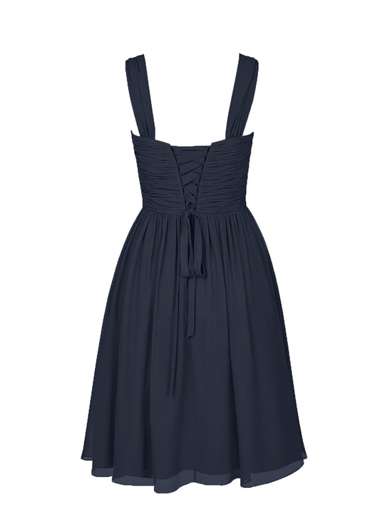 Chiffon Column Spaghetti Straps Sleeveless Bridesmaid Dress-F0311113