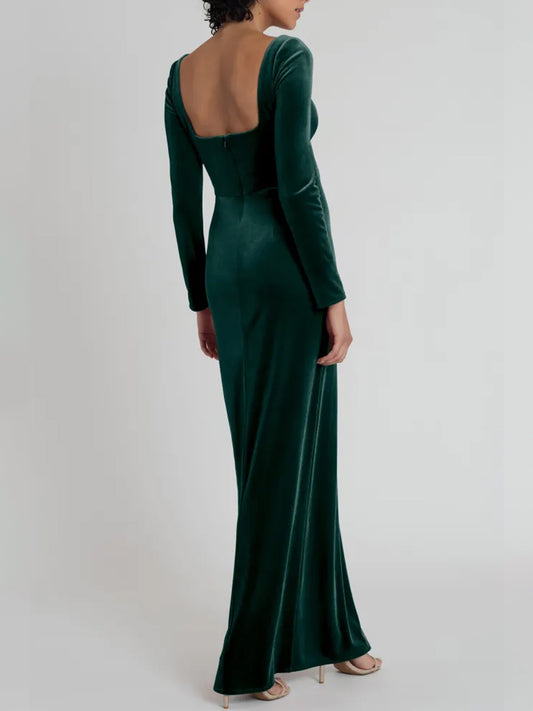 Velvet A-Line Boat Neck Long Sleeves Bridesmaid Dress-F0313010