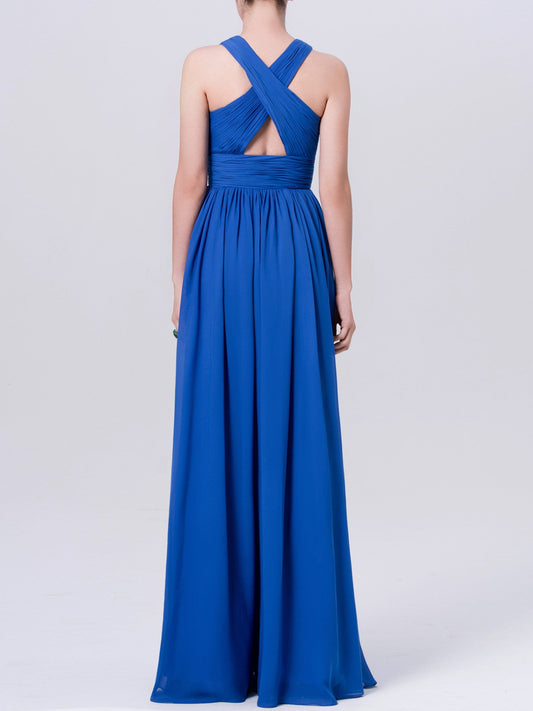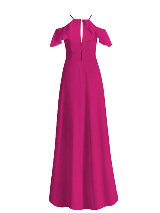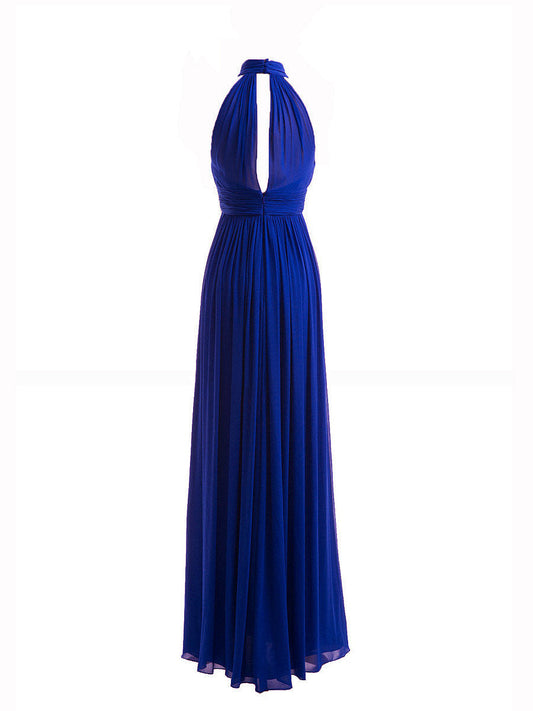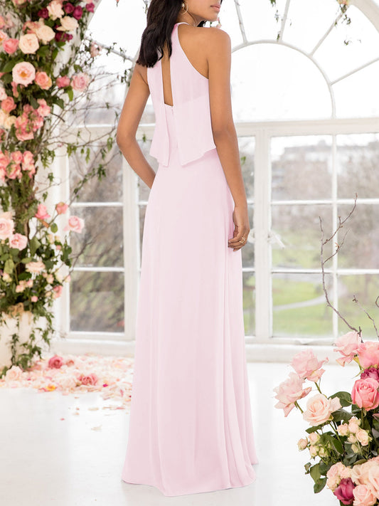Chiffon Column Halter Sleeveless Bridesmaid Dress-F0117920