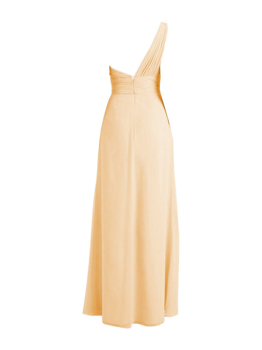 Chiffon A-line One Shoulder Sleeveless Bridesmaid Dress-F0117635