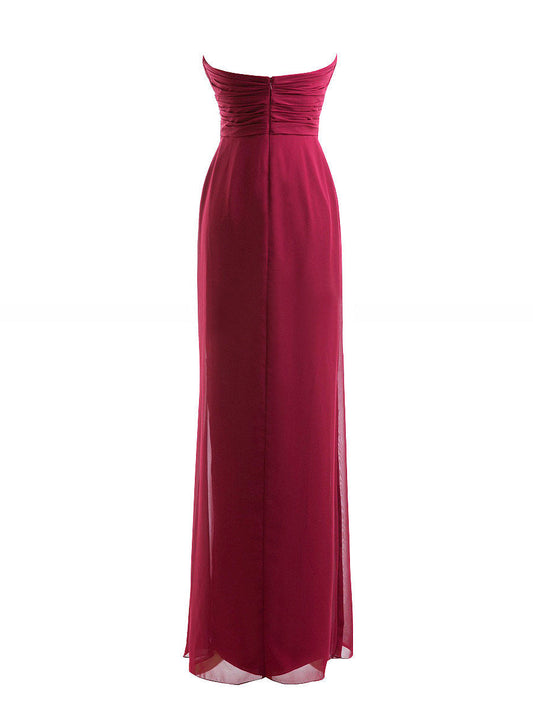 Chiffon Column Strapless Sleeveless Bridesmaid Dress-F0117910