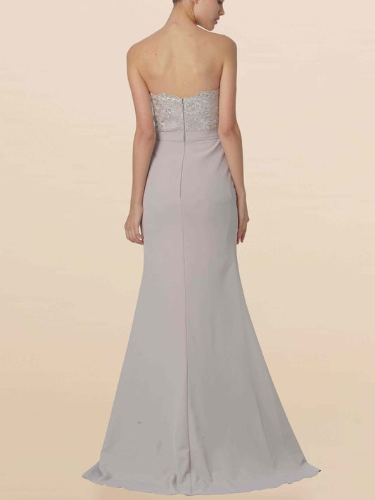 Lace Column Strapless Sleeveless Bridesmaid Dress-F0311030