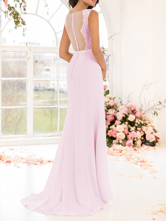 Chiffon Column Scoop Neck Sleeveless Bridesmaid Dress-F0311140