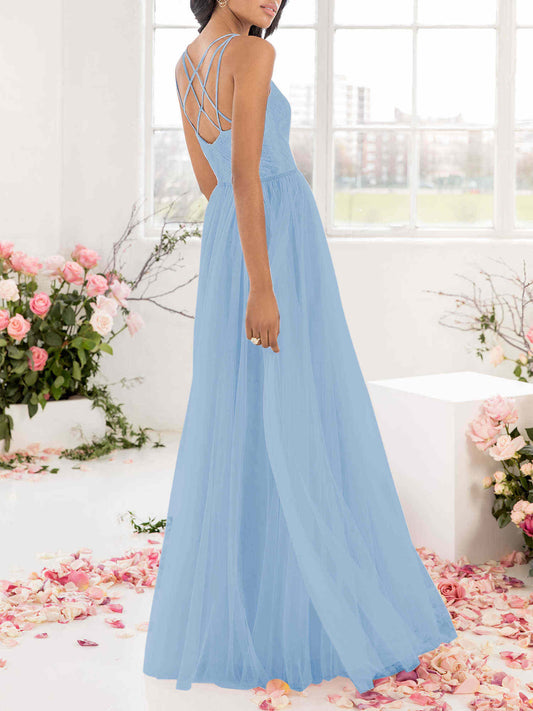 Chiffon Column V-Neck Sleeveless Bridesmaid Dress-F0113022