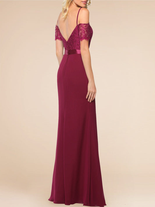 Lace Column Criss Cross Straps Sleeveless Bridesmaid Dress-F0113364