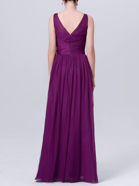 Chiffon Column V-Neck Sleeveless Bridesmaid Dress-F0113045