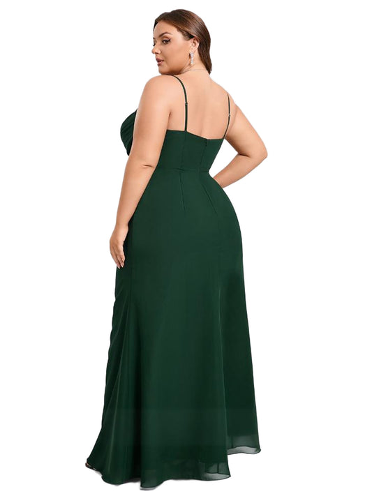 Plus Size Pearl Chiffon Long Prom Dress Spaghetti Straps Ball Gown GD300103